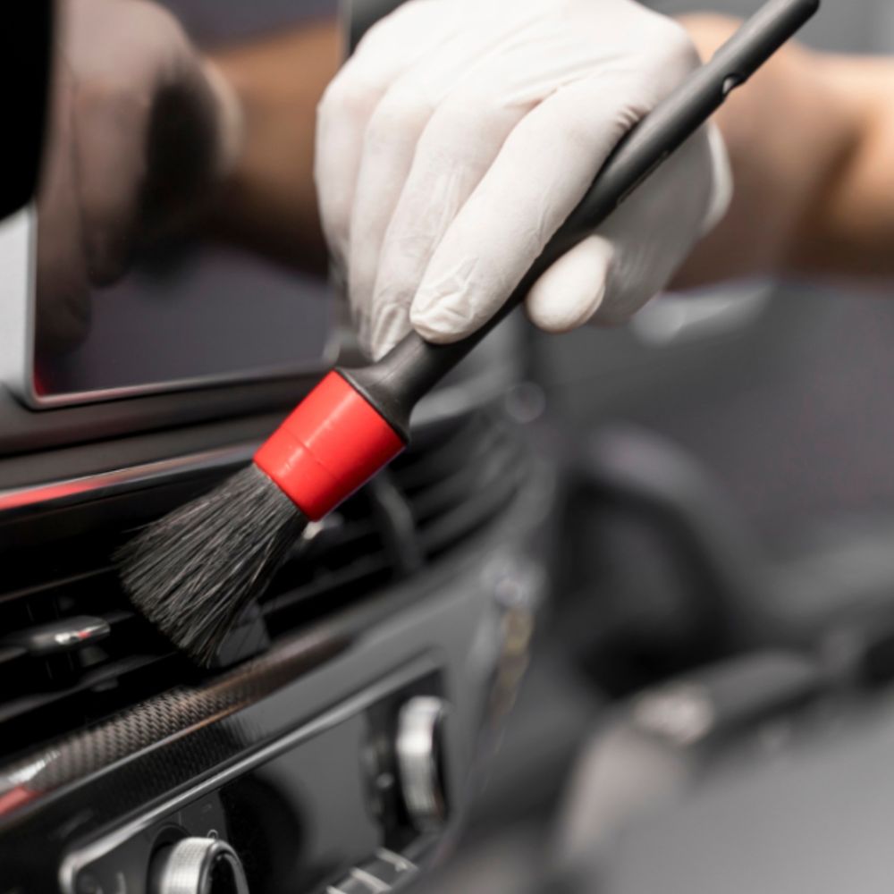 Our full vehicle detailing service includes complete interior and exterior detailing, starting with a thorough wash and detailed attention to wheels and wheel wells, followed by door jamb cleaning, window cleaning, interior vacuuming, and a full wipe-down of interior surfaces. It’s ideal if your vehicle needs a full reset or hasn’t been detailed in a while.